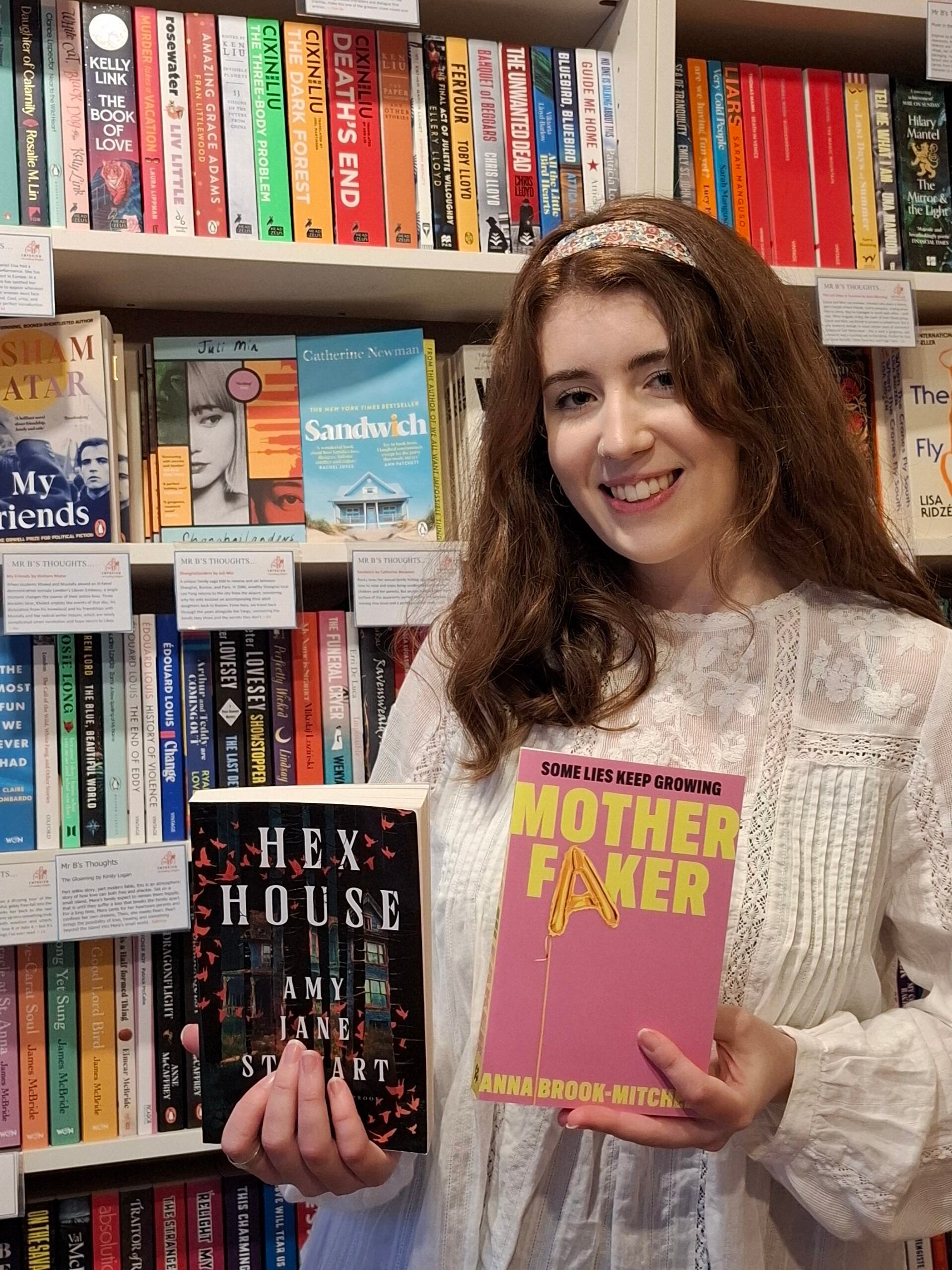 Charlotte, one of our newest booksellers, hasn’t taken long to raid the bookseller proofs shelf and find a couple she’s excited to get reading. Including Motherfaker by Anna Brook-Mitchell (Feb 26), a heart-warming comedy about a woman willing to go to extreme lengths to travel the world, and Hex House by Amy Jane Stewart (April 28), which Charlotte says “combines three of my favourite things: angry women seeking revenge, a spine-tingling landscape and a truth shrouded in mystery!”