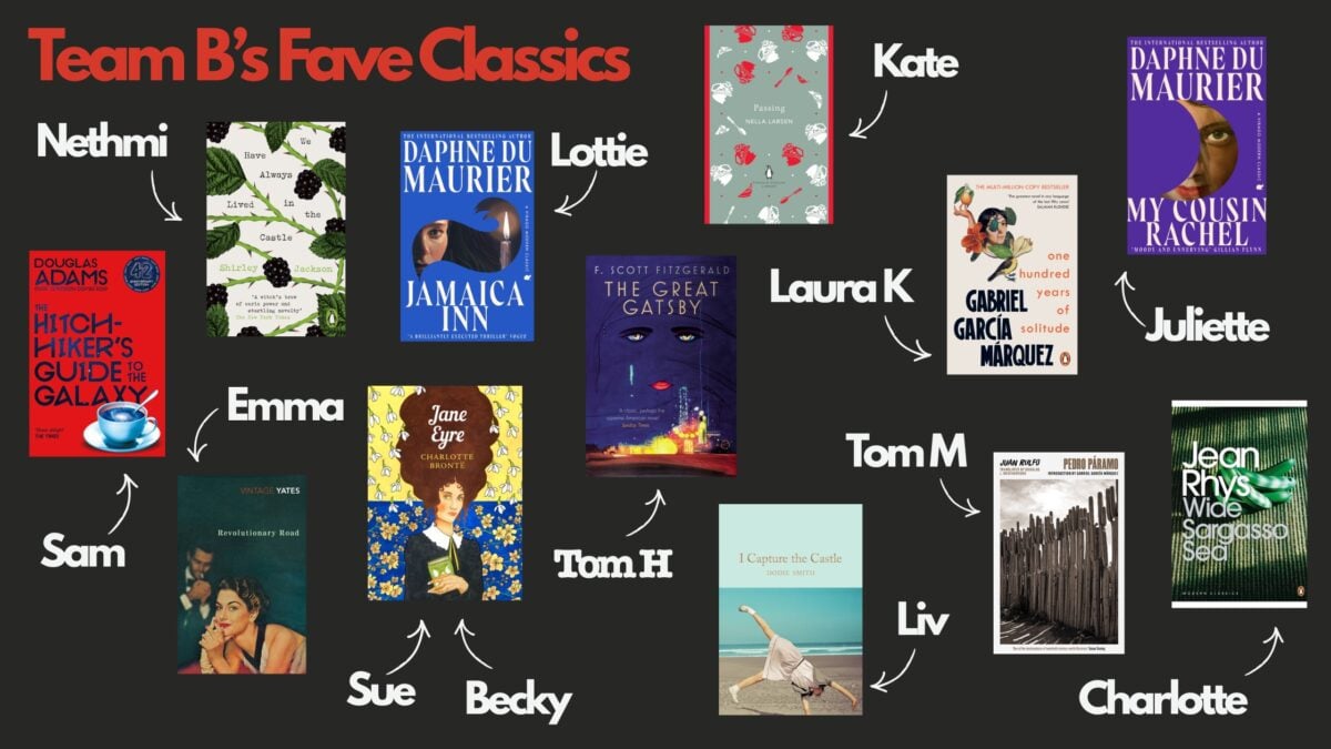 Check out the link to shop Team B’s selection of favourite classics – or look below, to see which bookseller chose which book!