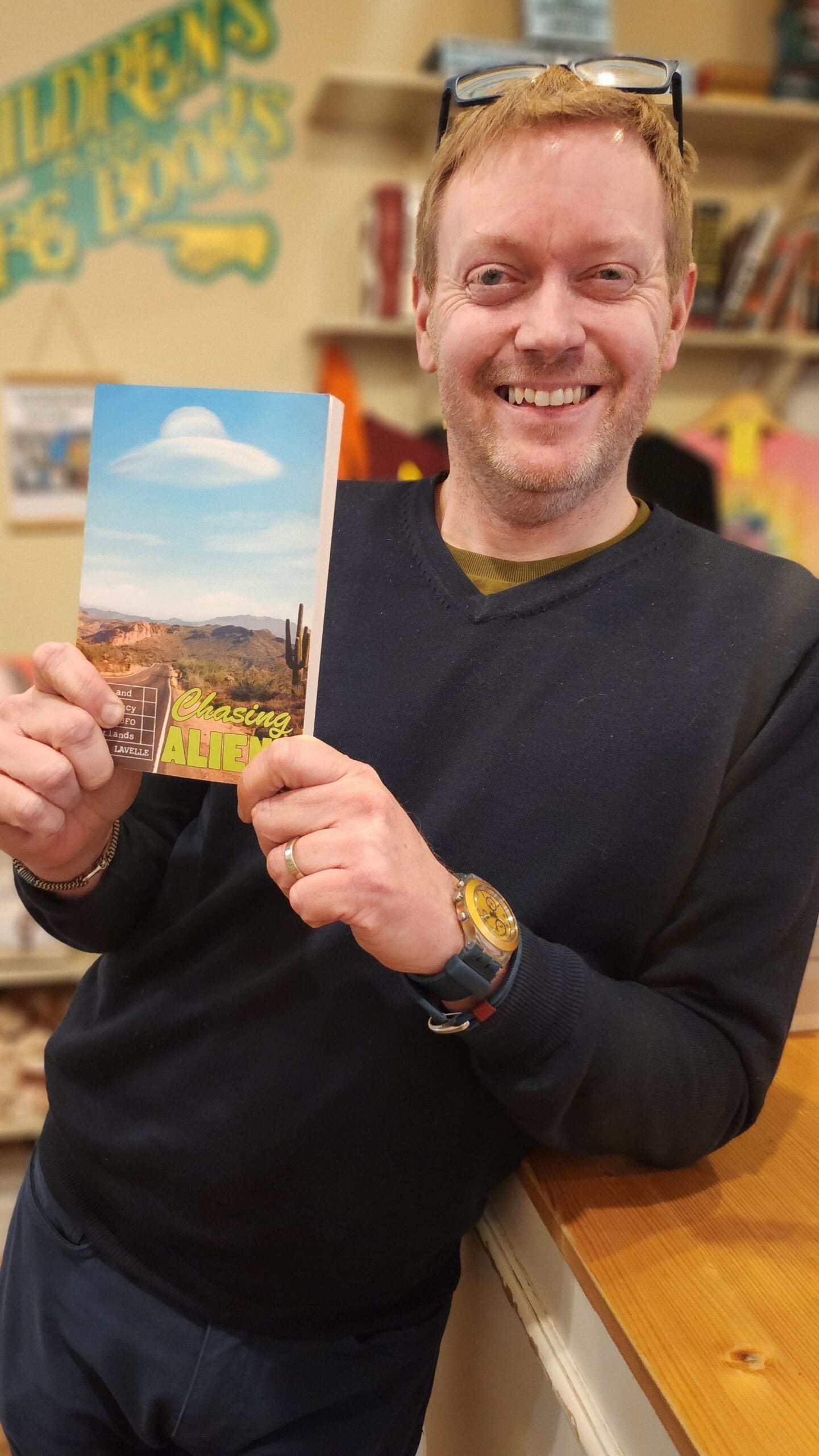 Sue is sporting her golden jumper in celebration of an upcoming novel certain to be a hit with many of our customers – The Golden Boy (April 16th) by Patricia Finn. Sue says: “Multimillionaire Stafford has retired to his luxury estate on Maui with wife Agnes. Yet the former Hollywood golden boy is bored and unhappy, trapped in his gilded cage. Until a letter arrives which forces him to confront secrets from his past and reinvent a future that will now include the four grandchildren of an old school friend. A redemptive tale in a gorgeous setting and full of messy characters trying to do their best. Moving, funny and entertaining, it’s perfect for fans of Frederik Backman and Amor Towles.”