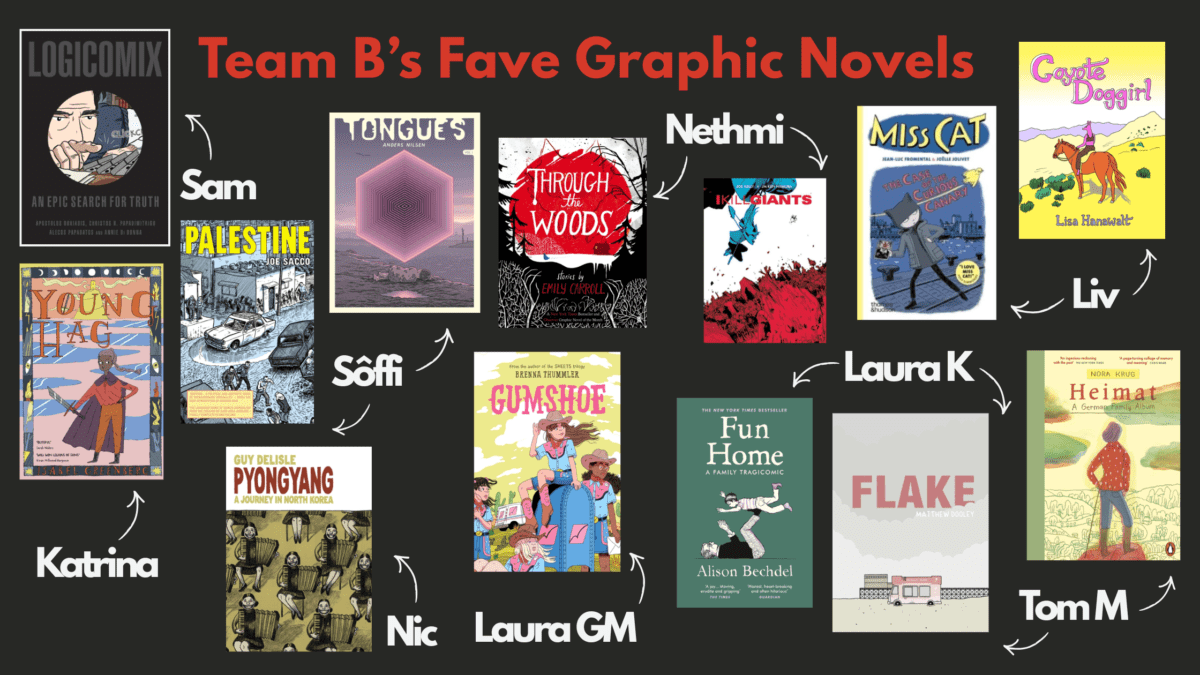 Check out the link to shop Team B’s selection of favourite graphic novels – or look below, to see which bookseller chose which book!