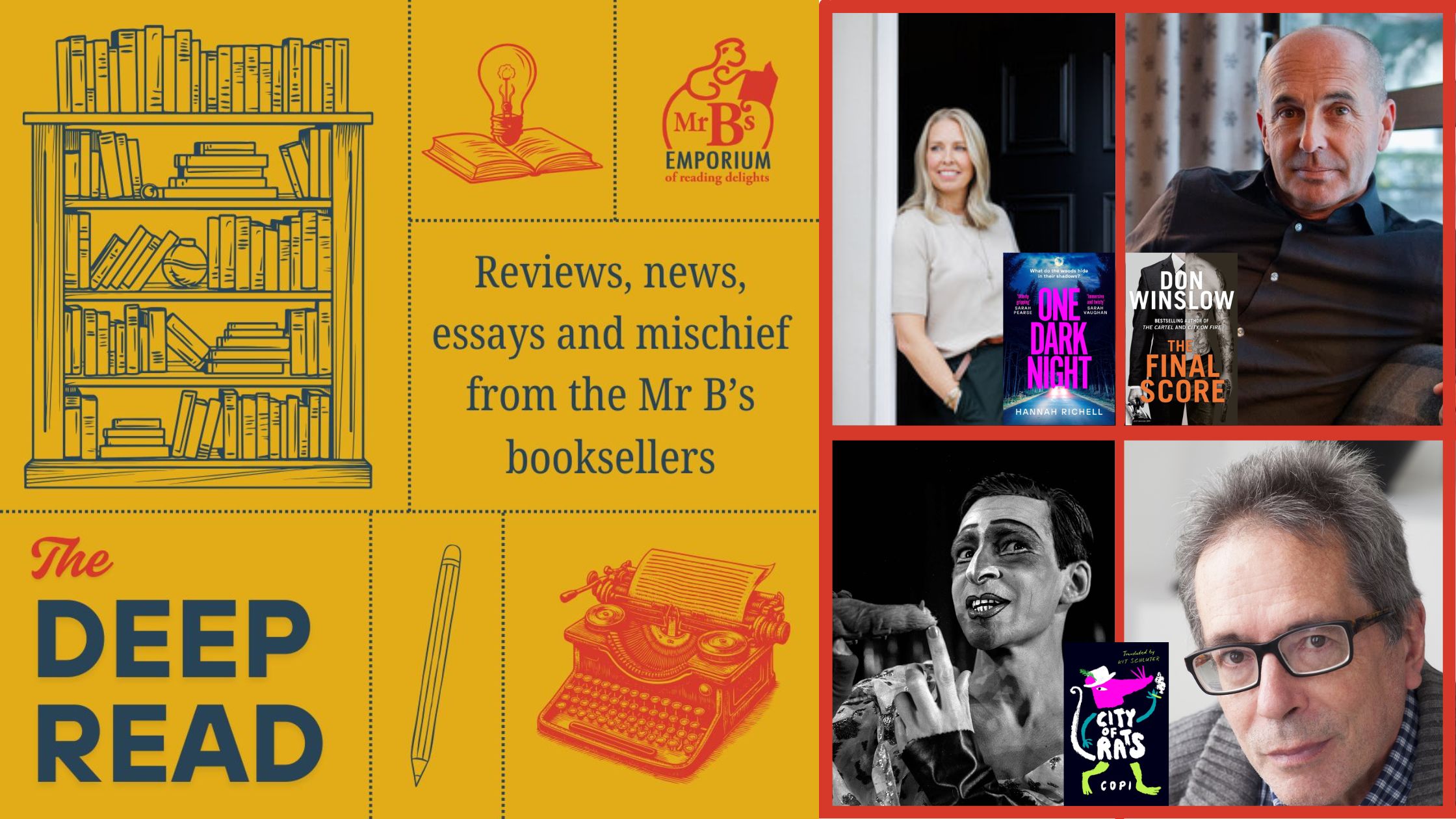 This month, legendary Argentinian author César Aira introduces the exuberant and transgressive novelist Copi, whose City of Rats is published in the UK for the first time. There is also a Q&A with friend of the shop Hannah Richell, whose latest novel One Dark Night is now out in paperback. And Tom celebrates the return of Don Winslow…