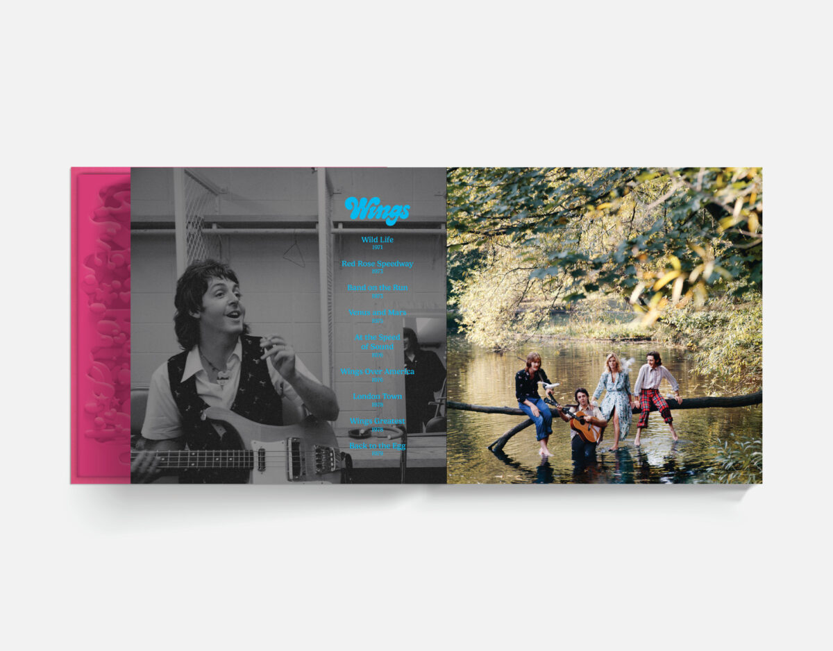 • A 24-page, bound-in, full-color booklet of artwork featuring the covers (front and back) of the Wings-era albums and singles